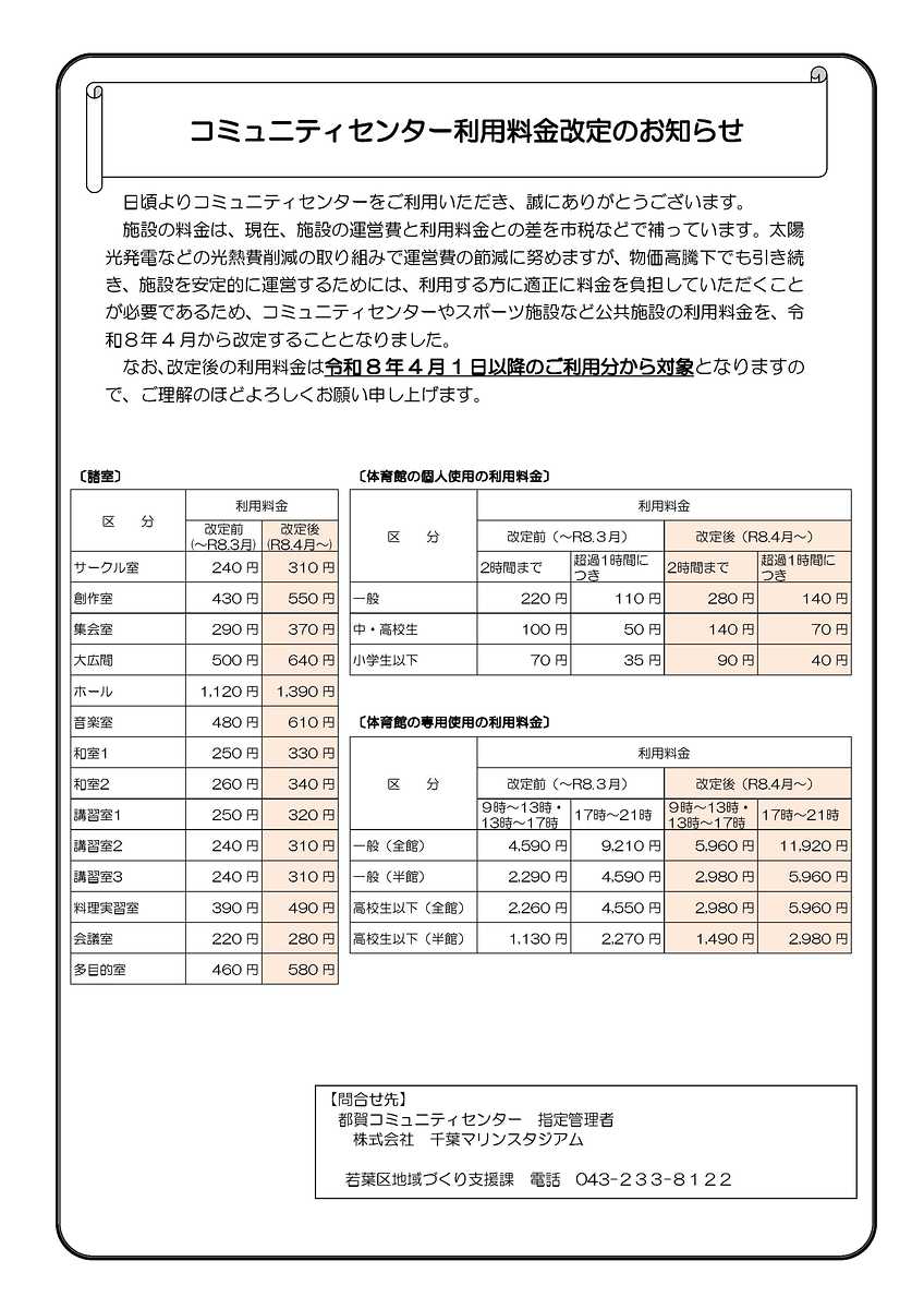 【お申し込み】043-233-4211 都賀コミュニティセンター