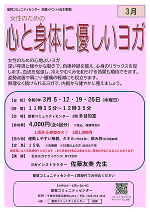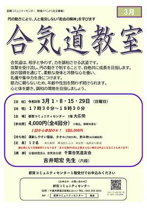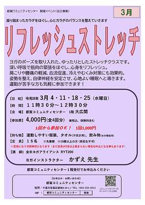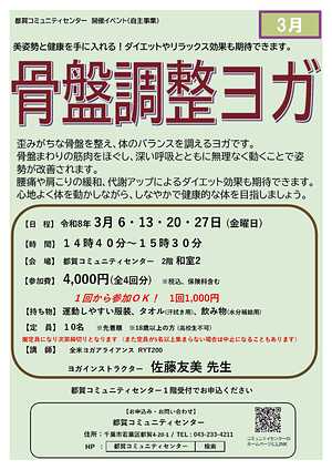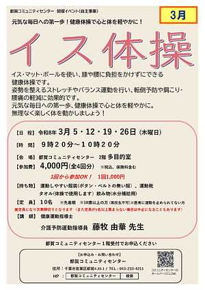 開催日 令和8年3月6日、13日、20日、27日時 間 毎月(金曜日) 13:30~14:30