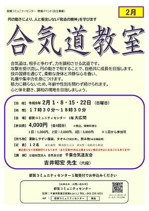 開催日 令和8年2月6日、13日、20日、27日時 間 毎月(金曜日) 13:30~14:30